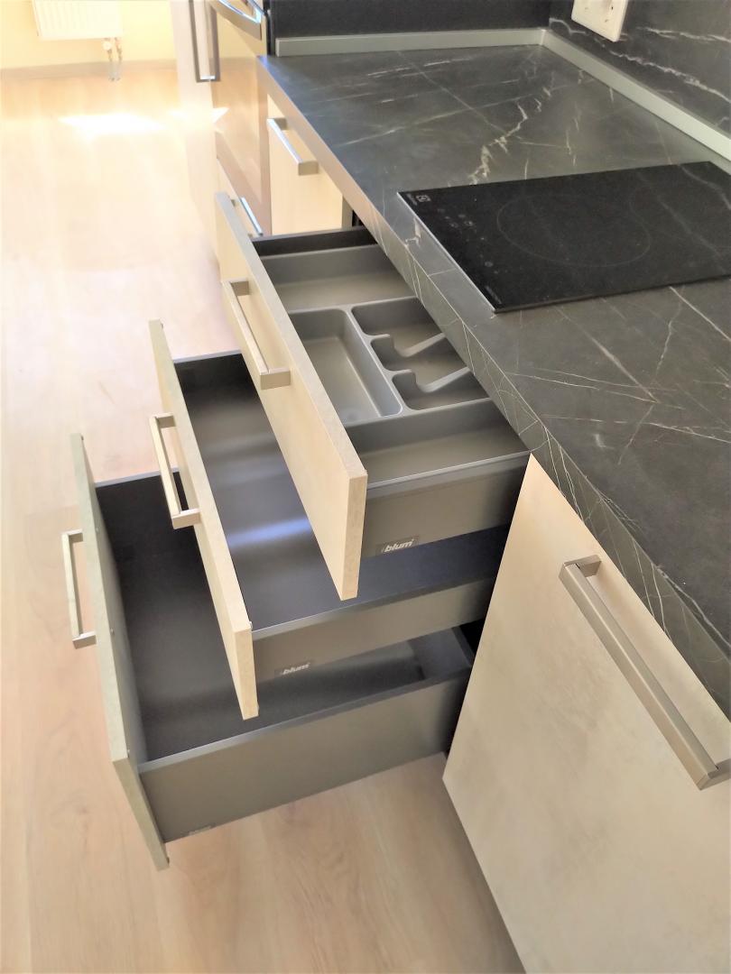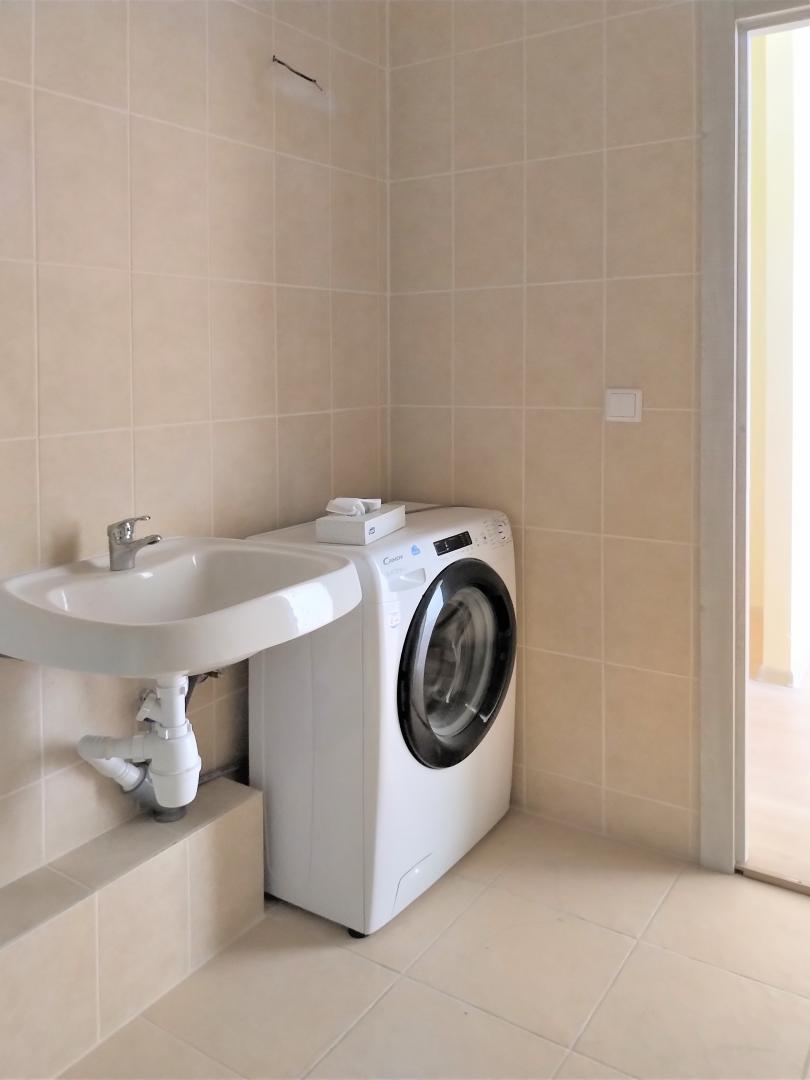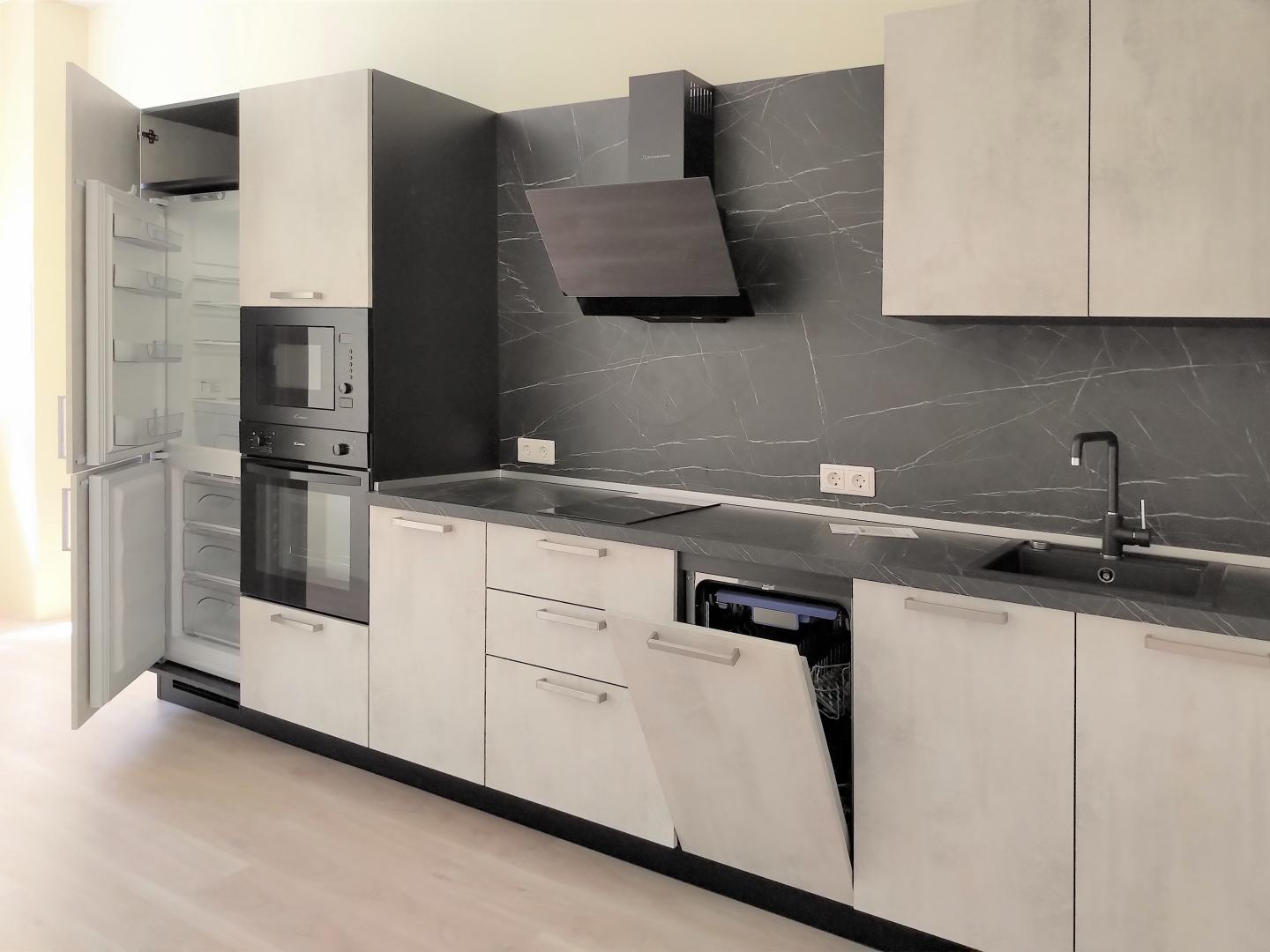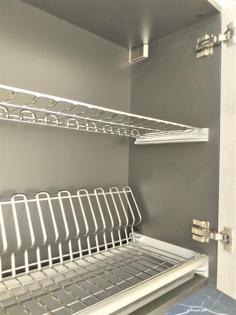 Кухня новая, делалась под себя, фурнитура BLUM, мойка – BLANCO. Ящики – мечта хозяйки. Встроенный холодильник, встроенная посудомойка, встроенная микроволновка, стильная вытяжка, варочная поверхность и духовой шкаф, оригинальная сушилка для посуды, стиральная машинка – Candy. Всё это нами тщательно подбиралось для себя и останется Вам.